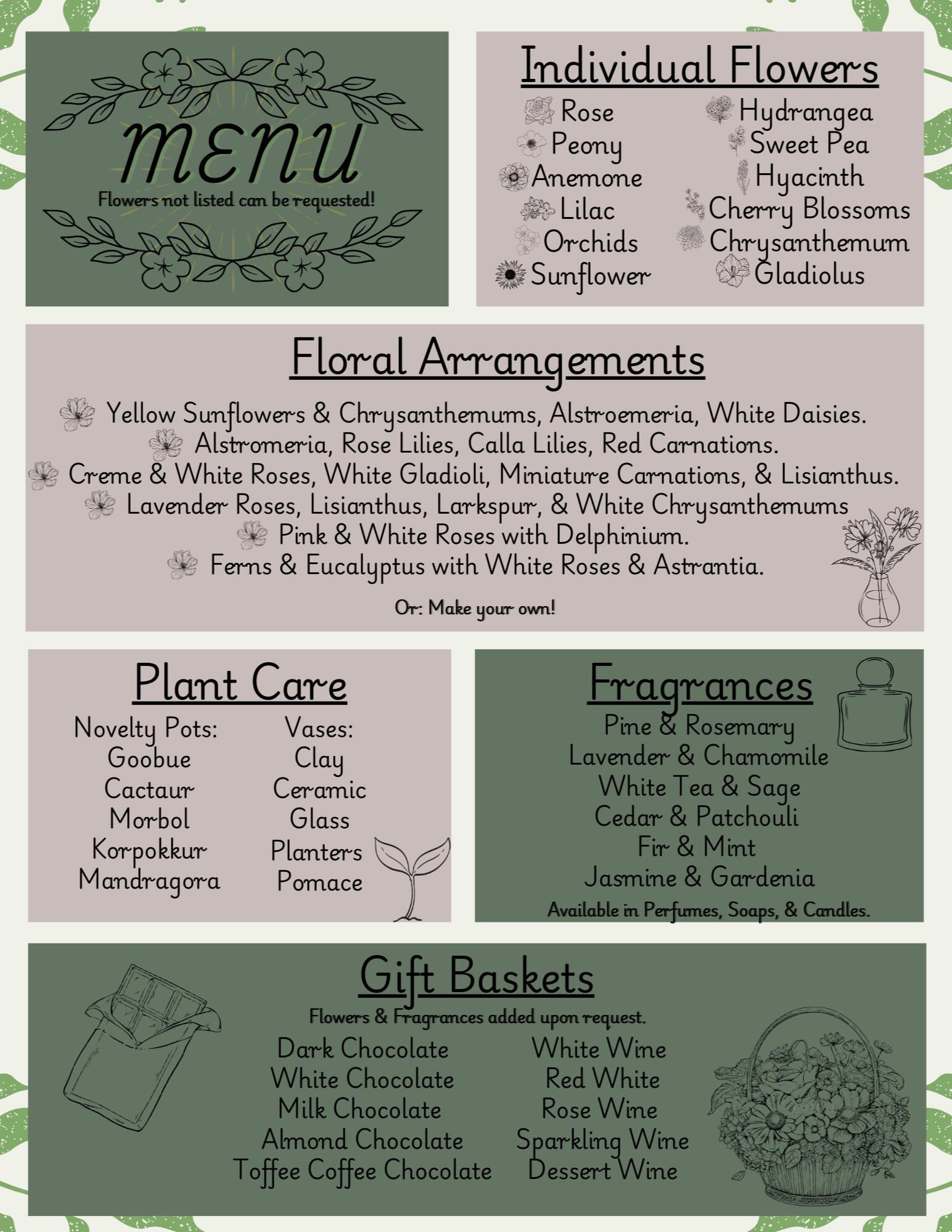 Floramour is a shop who's main focus is to provide a place for people to find gifts and the like for those they hold dear, or for anyone who simply holds a love for the floral aspect of life. Soleil will do her best to provide for her customer's botanical needs.